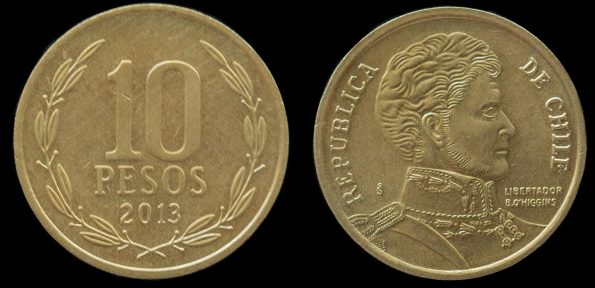 O chile, até a chegada dos Espanhóis, era domínio dos Incas no norte e dos índios Mapuches no centro e sul do território. A figura de um Mapuche estampa as atuais moedas de 100 Pesos. A moeda de 500 Pesos faz homenagem ao Cardeal Chileno Raúl Silva Henríquez, que ativamente defendeu os direitos humanos durante a ditadura militar Chilena de Pinochet. |