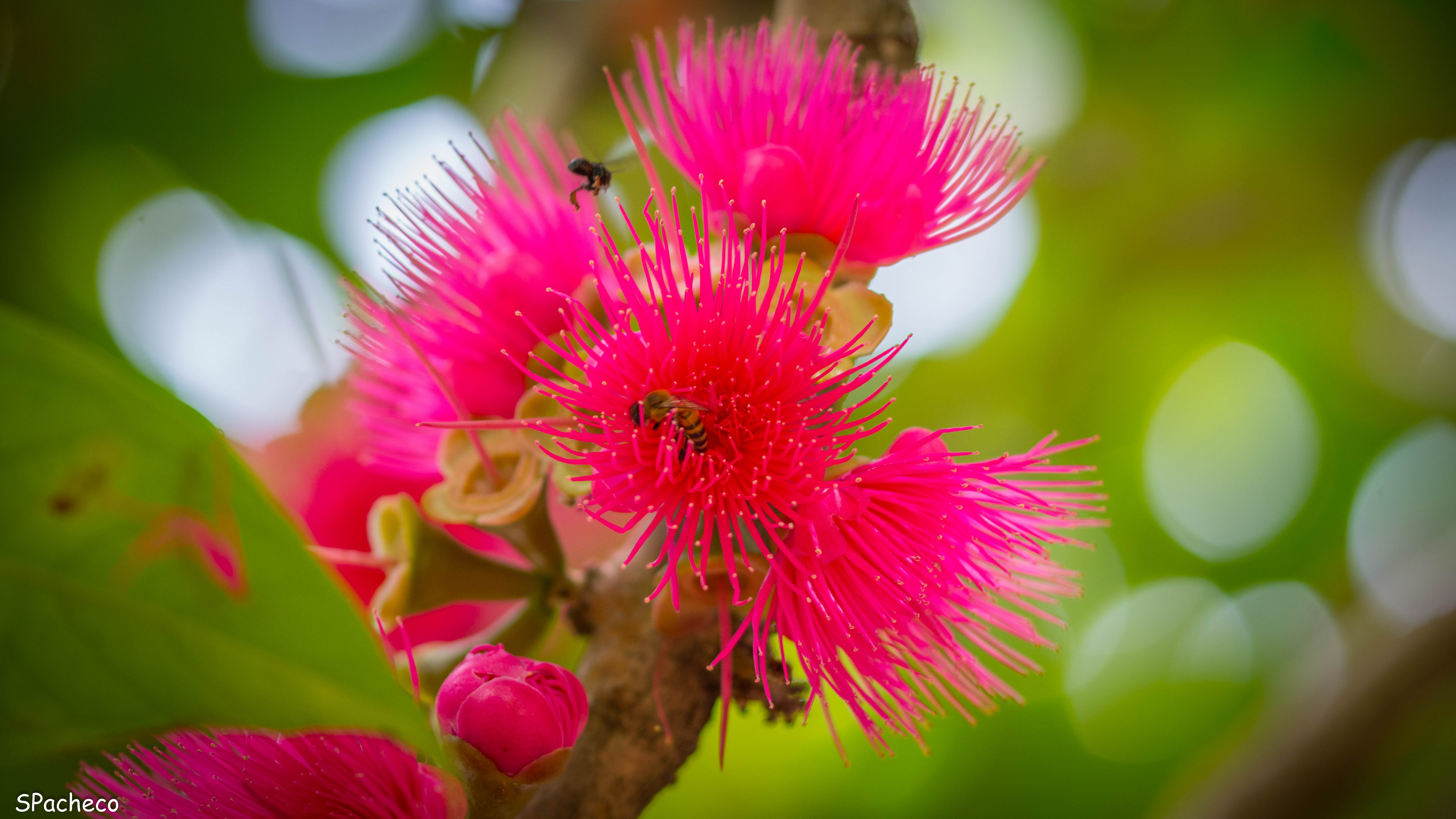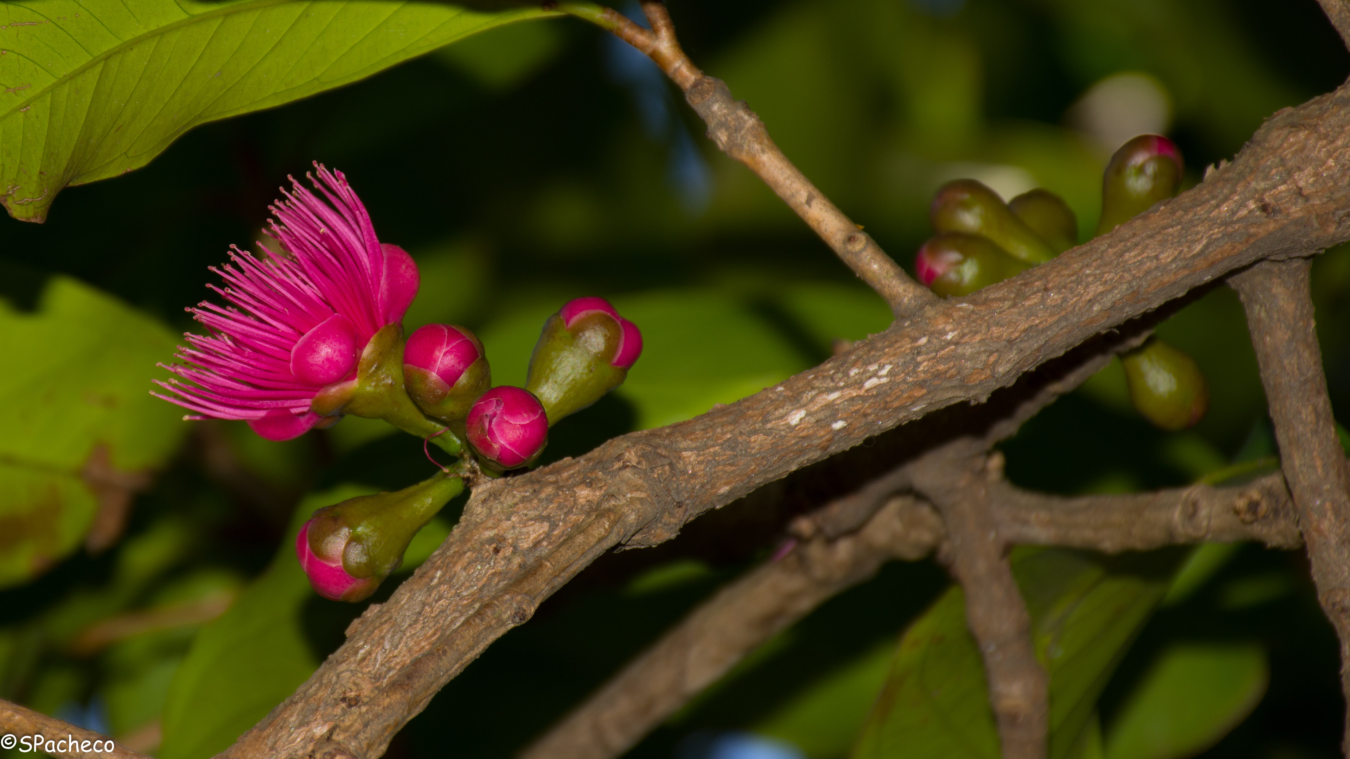 O Jambeiro é uma árvore muito bonita, de folhas grandes verde escuro e de copa densa. Os frutos são em forma de pêra de coloração vermelho escuro quando maduros, a polpa é muito branca e pouco densa. É muito comum no município do Rio de Janeiro, facilmente encontrado em quintais e na arborização urbana. É nativo da azia mas se adaptou perfeitamente ao nosso clima. As flores chamam atenção por sua coloração vermelha e por fazerem uma camada vermelha no chão ao cairem das árvores. |