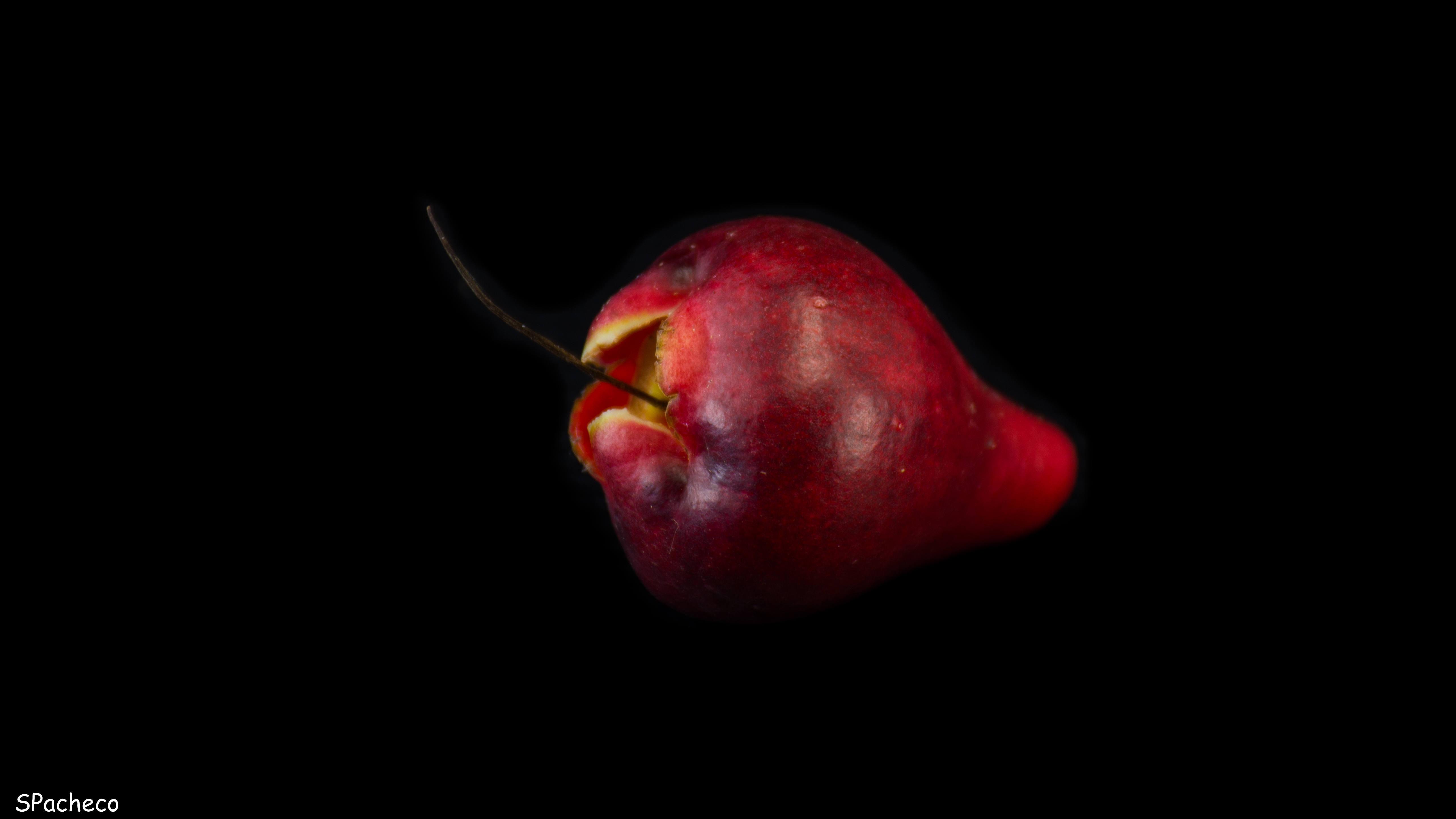 Os frutos apresentam um sabor muito suave, adocicado e um aroma que lembra o de flores, é comum ouvir as pessoas dizerem que o Jambo-Vermelho tem gosto de rosas. O caroço é redondo e solta com facilidade da polpa. O vermelho característico da casca dos frutos é consequencia do alto teor de antocianinas. |